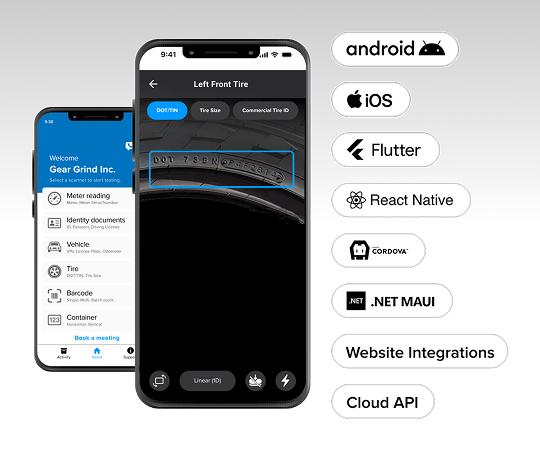 Integrieren Sie den DOT-Scan Anylineinnerhalb weniger Tage in Ihre bestehende App oder Webplattform. Verfügbar für iOS, Android und plattformübergreifende Frameworks – oder nutzen Sie unsere einsatzbereite TireBuddy , um sofort mit dem Scannen zu beginnen.