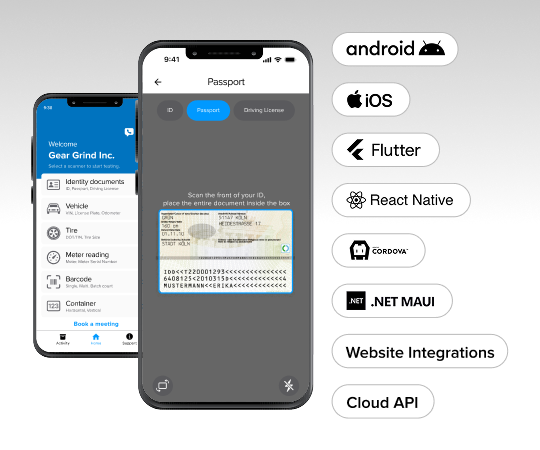 Nuestro SDK móvil para el escaneo de ID está desarrollado de forma nativa para iOS, Android y UWP, pero nuestro escáner de ID también es compatible con marcos de integración comunes como Xamarin, Cordova, React Native, .NET (MAUI) y Flutter. El código de ejemplo se puede encontrar en nuestra documentacióny proyectos de ejemplo en GitHub.