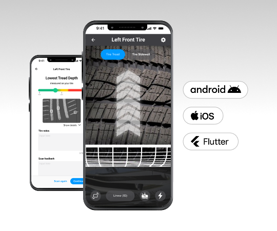 Comprueba la profundidad y el desgaste de los neumáticos con solo un teléfono móvil. Integra controles digitales completos de los neumáticos en tu flujo de trabajo de inspección actual con la TireBuddy o ToolKit SDK).