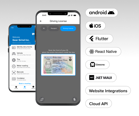 Integrate AI-powered driver’s license scanning into your existing apps or platforms on iOS, Android, and all major cross-platform frameworks. Or embed license scanning alongside VIN, plate, or barcode scanning for a unified vehicle and driver intake process.